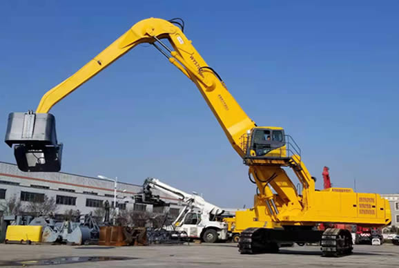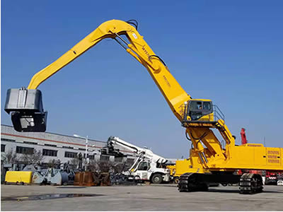 該設(shè)備分別采用了大功率“國三”標(biāo)準(zhǔn)發(fā)動(dòng)機(jī)、380V 西門子電機(jī),以及全套采用施耐德控制系統(tǒng)拖動(dòng)控制兩套力士樂液壓動(dòng)力機(jī)構(gòu)及先導(dǎo)液力控制的世界首臺“雙動(dòng)力”抓料機(jī)。該機(jī)設(shè)計(jì)了寬體結(jié)構(gòu)梁,以及加強(qiáng)型可更換正、負(fù)差的二節(jié)式作業(yè)主臂,最大吊重量達(dá) 25 噸、最大作業(yè)半徑為 18米。在 5 至 12 米作業(yè)半徑內(nèi),可配備 5.0 立方蚌殼抓斗,或 2.5 立方梅花廢鋼抓斗。