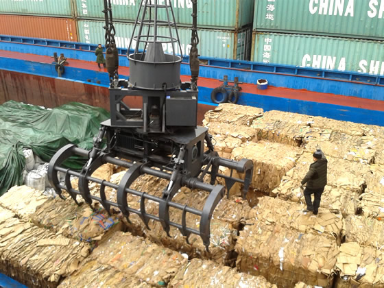 為港口吊配備大型機電液抓斗,抓紙捆卸船